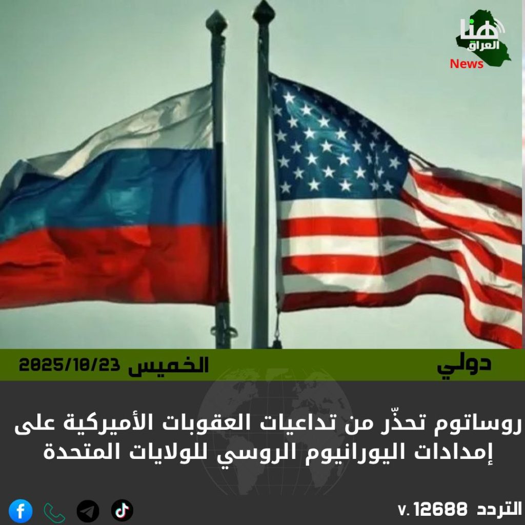 وأوضح ليخاتشوف في تصريحات صحفية، أن أي تدهور في العلاقات بين موسكو وواشنطن سينعكس سلباً على التعاون في مجال الطاقة النووية، مبيناً أن “العقوبات الأخيرة لا تستهدف قطاع الطاقة الذرية بشكل مباشر، إلا أن استمرار التوتر سيقود عاجلاً أو آجلاً إلى تداعيات سلبية على صادرات اليورانيوم الروسي إلى الولايات المتحدة”.