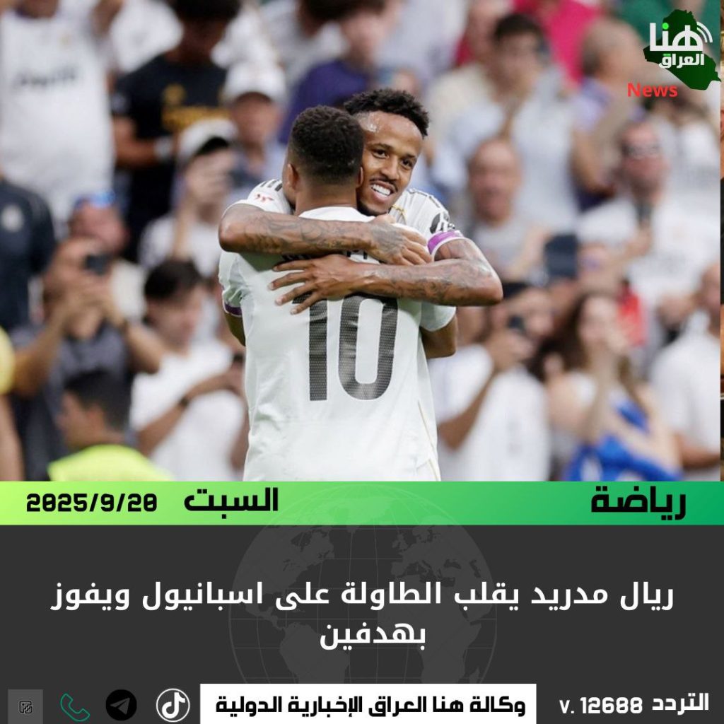 الرئيسية/رياضة/ريال مدريد يحسم المواجهة أمام إسبانيول بثنائية ميليتاو ومبابي في الدوري الاسباني رياضة ريال مدريد يحسم المواجهة أمام إسبانيول بثنائية ميليتاو ومبابي في الدوري الاسباني شاركها فيسبوك X لينكدإن Tumblr بينتيريست Reddit VKontakte Odnoklassniki Pocket مشاركة عبر البريد طباعة