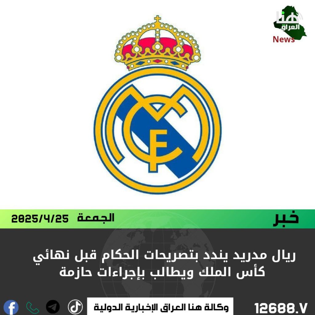 أصدر نادي ريال مدريد، اليوم الجمعة، بيانًا رسميًا عبّر فيه عن رفضه القاطع للتصريحات التي صدرت عن الحكام المعيّنين لإدارة نهائي كأس جلالة الملك، المقرّر إقامته غدًا 26 أبريل 2025.