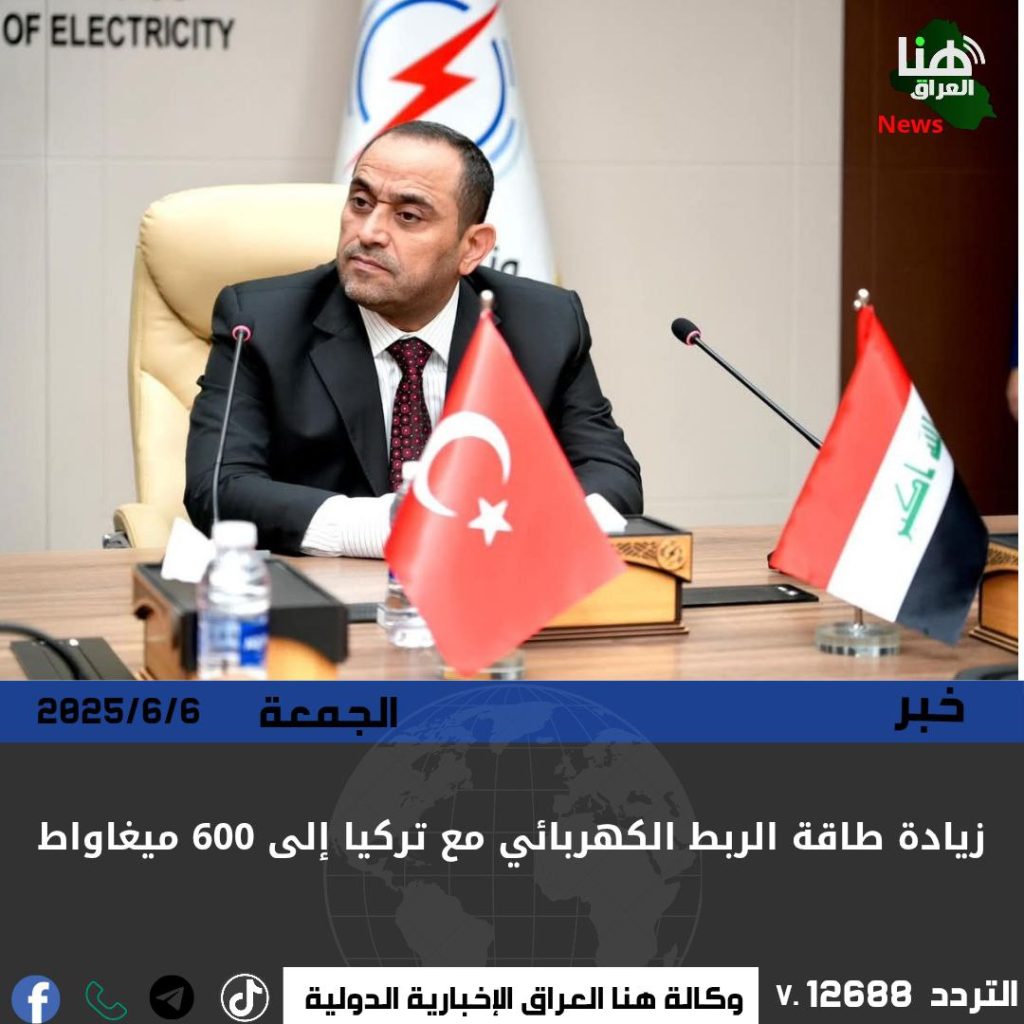 أعلن وزير الكهرباء عن دخول التوسعة الجديدة لخط الربط العراقي-التركي حيّز التنفيذ، بزيادة الطاقة المربوطة إلى 600 ميغاواط بدءًا من اليوم، ضمن جهود الوزارة لتعزيز الشبكة الوطنية وتقليل الفجوة في إنتاج وتوزيع الطاقة، خاصة مع دخول موسم الصيف.