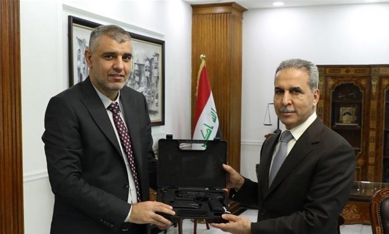وبحسب البيان، “قدم الدراجي، نموذج الصناعة الوطنية (مسدس بابل) هدية إلى مجلس القضاء الاعلى حيث عرض امكانية تجهيز دائرة الحراسات القضائية بالاسلحة المنتجة محليا”.