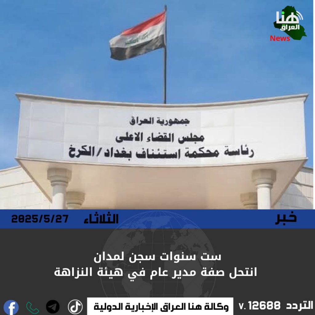 قضت محكمة جنايات الكرخ بالسجن ست سنوات بحق مدان انتحل صفة مدير عام في هيئة النزاهة، بعد إدانته بمحاولة استغلال الوظيفة الوهمية لتحقيق منافع شخصية.