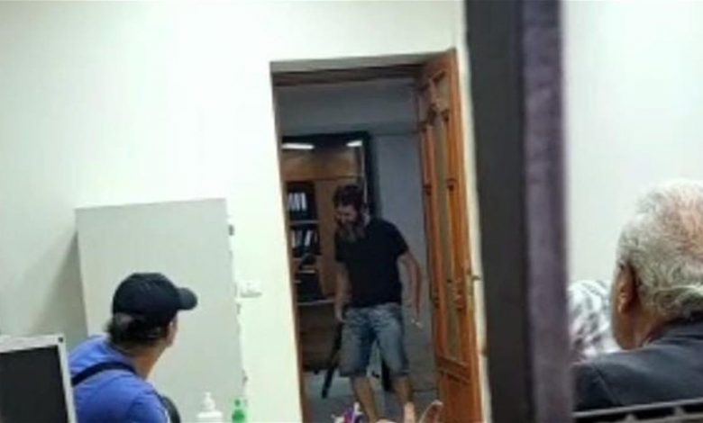 وظهر في مقطع فيديو تداوله مستخدمو شبكات التواصل الاجتماعي، الشخص وهو يحمل سلاحاً ويحتجِز بعض الموظفين والعملاء، فيما يقوم الموظفون بعمل اتصالات.