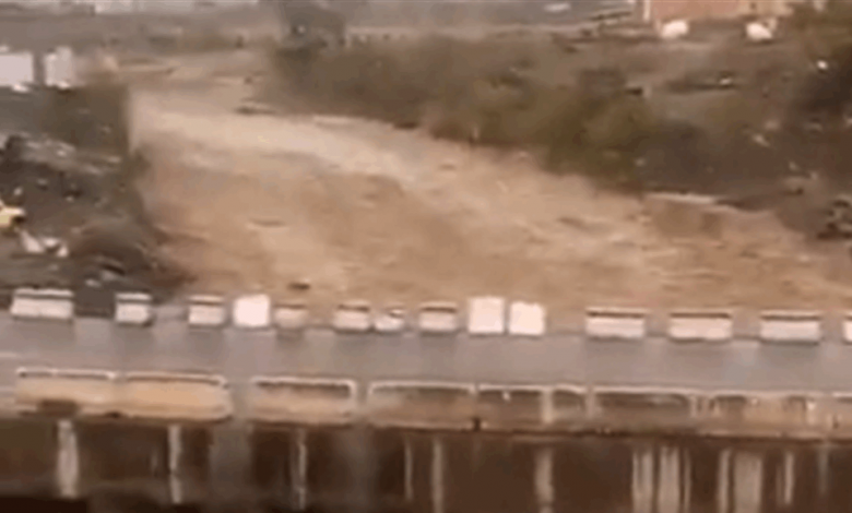 سيل ضخم يغمر جسرا بأكمله في السعودية (فيديو)
