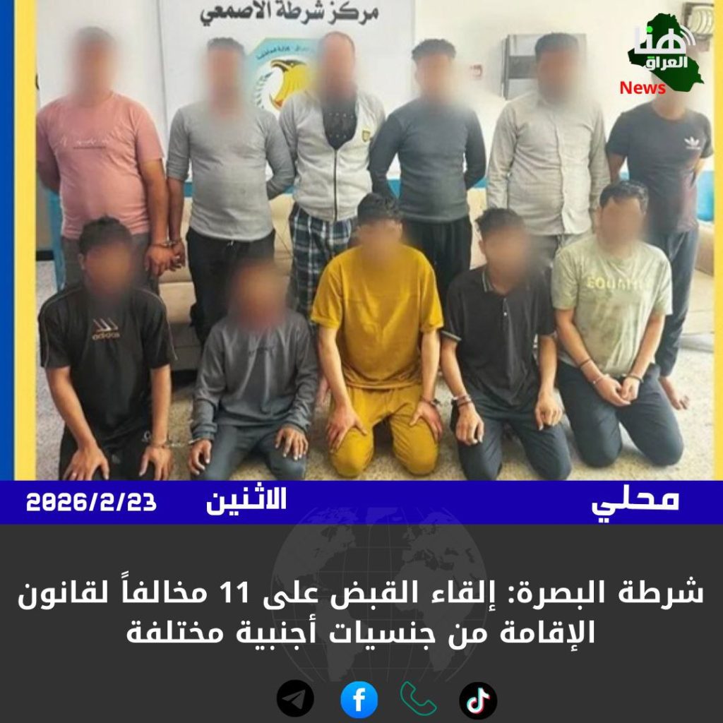 الرئيسية/امن/شرطة البصرة: إلقاء القبض على 11 مخالفاً لقانون الإقامة من جنسيات أجنبية مختلفة امنمحلي شرطة البصرة: إلقاء القبض على 11 مخالفاً لقانون الإقامة من جنسيات أجنبية مختلفة شاركها فيسبوك X لينكدإن Tumblr بينتيريست Reddit VKontakte Odnoklassniki Pocket مشاركة عبر البريد طباعة