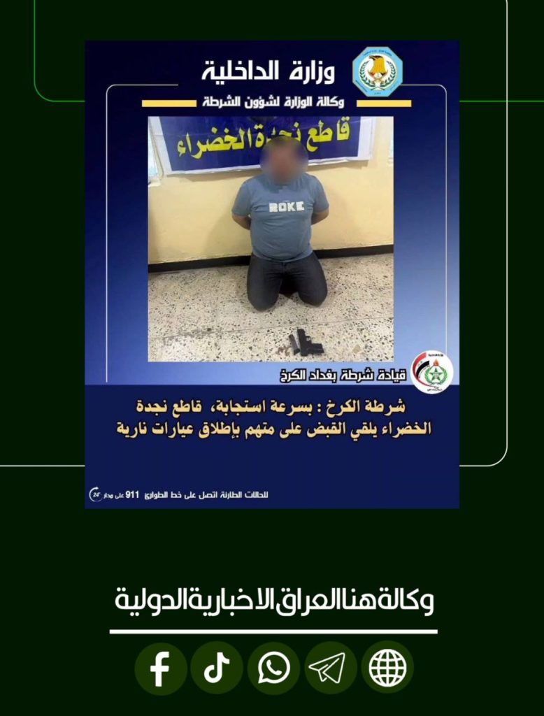 شرطة الكرخ تلقي القبض على متهم بإطلاق النار بشكل غير مسؤول ومخالف للقانون.