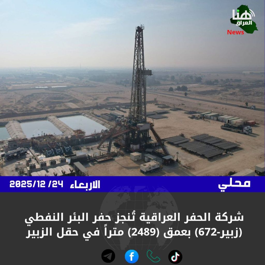 الرئيسية/اقتصاد/شركة الحفر العراقية تُنجز حفر البئر النفطي (زبير-672) بعمق (2489) متراً في حقل الزبير اقتصادمحلي شركة الحفر العراقية تُنجز حفر البئر النفطي (زبير-672) بعمق (2489) متراً في حقل الزبير شاركها فيسبوك X لينكدإن Tumblr بينتيريست Reddit VKontakte Odnoklassniki Pocket مشاركة عبر البريد طباعة