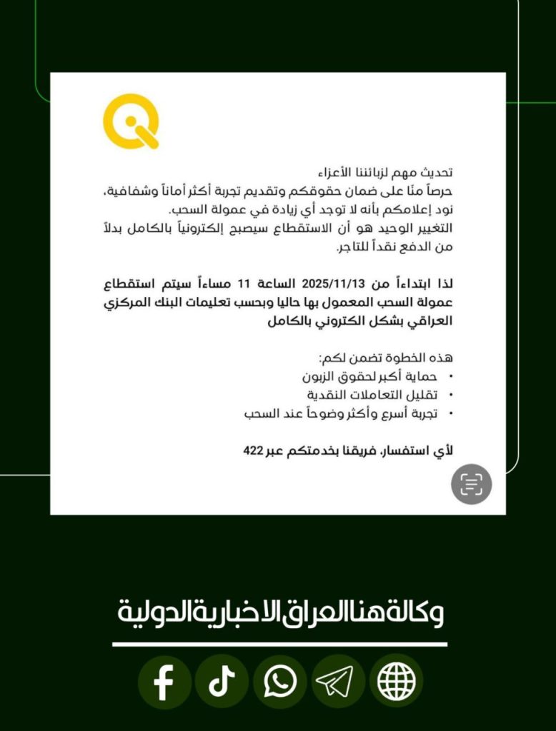 شركة كي كارد توضح آلية استقطاع عمولة السحب الإلكتروني الجديدة البالغة 3000 دينار لكل مليون ابتداءً من الليلة