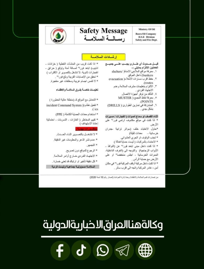 الرئيسية/محلي/شركة نفط البصرة تصدر جملة من تعليمات السلامة للعاملين في مؤسساتها. محلي شركة نفط البصرة تصدر جملة من تعليمات السلامة للعاملين في مؤسساتها. شاركها فيسبوك X لينكدإن Tumblr بينتيريست Reddit VKontakte Odnoklassniki Pocket مشاركة عبر البريد طباعة