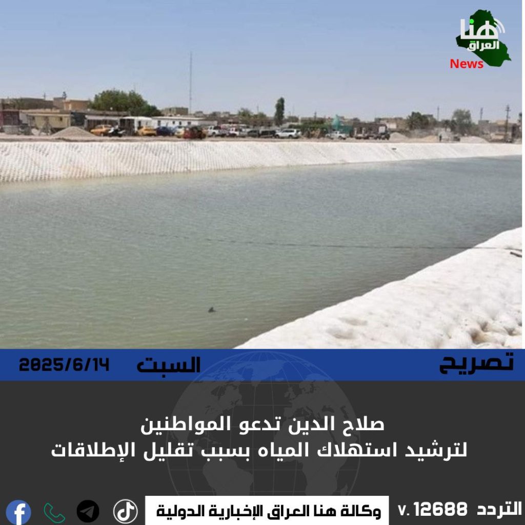 صلاح الدين تدعو المواطنين لترشيد استهلاك المياه بسبب تقليل الإطلاقات