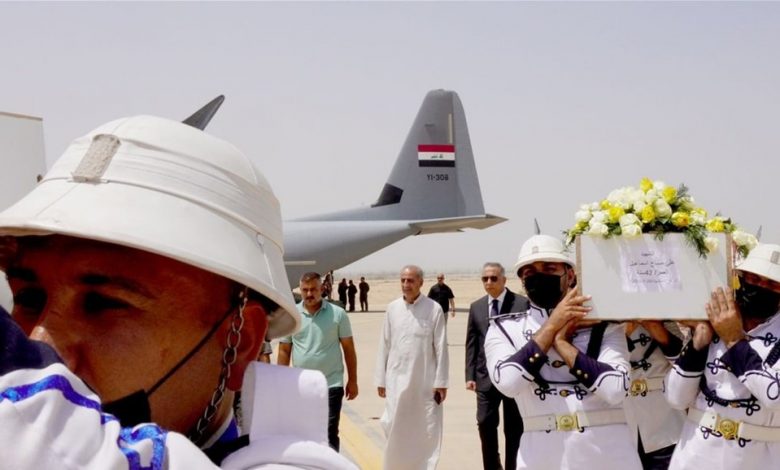 وصلت جثامين ضحايا القصف التركي على دهوك، اليوم الخميس، إلى مطار بغداد الدولي، وسط إجراء تشييع رسمي، تقدّمه رئيس الوزراء مصطفى الكاظمي.