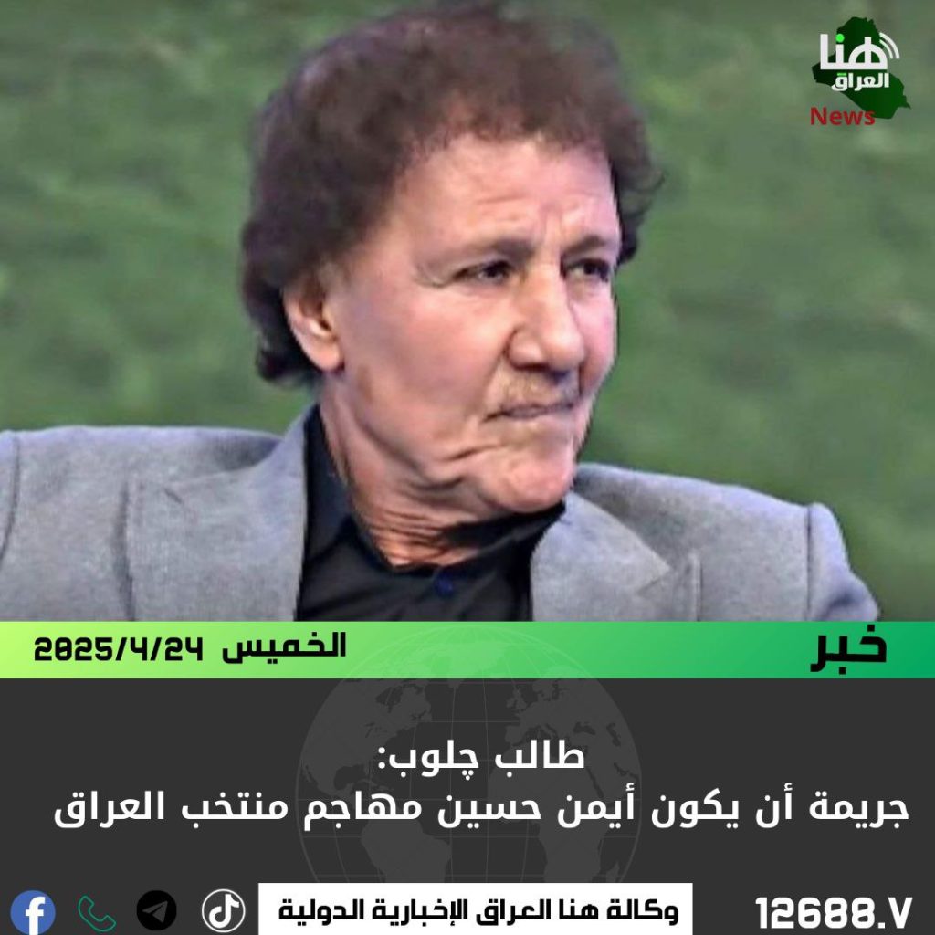 هاجم المدرب العراقي السابق طالب چلوب خيارات المنتخب الوطني، معتبراً أن إشراك أيمن حسين كمهاجم أساسي هو “جريمة كروية”، مضيفاً: “أقسم بالله، هذا لا يليق بمنتخب مثل العراق”.