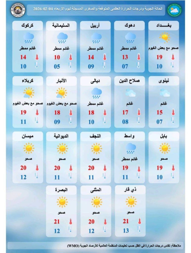 الرئيسية/الطقس/طقس العراق.. أمطار وثلوج وتصاعد للضباب خلال الأيام المقبلة الطقسمحلي طقس العراق.. أمطار وثلوج وتصاعد للضباب خلال الأيام المقبلة شاركها فيسبوك X لينكدإن Tumblr بينتيريست Reddit VKontakte Odnoklassniki Pocket مشاركة عبر البريد طباعة