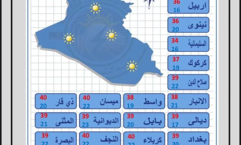أعلنت هيئة الأنواء الجوية، اليوم الثلاثاء، حالة طقس العراق خلال الأيام المقبلة، فيما أشارت إلى استقرار في درجات الحرارة.