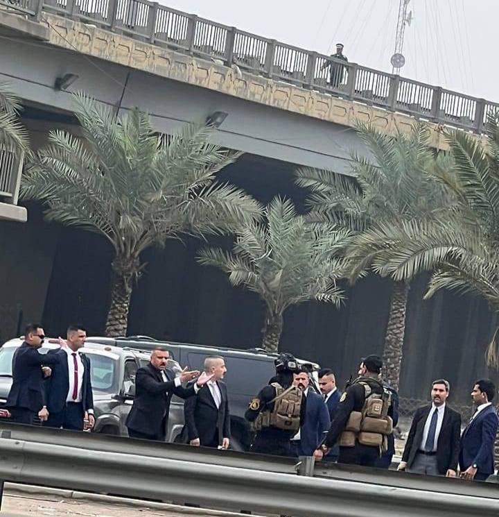 وزير الداخلية يترجل من موكبه لفك زحامات طريق محمد القاسم وسط بغداد.