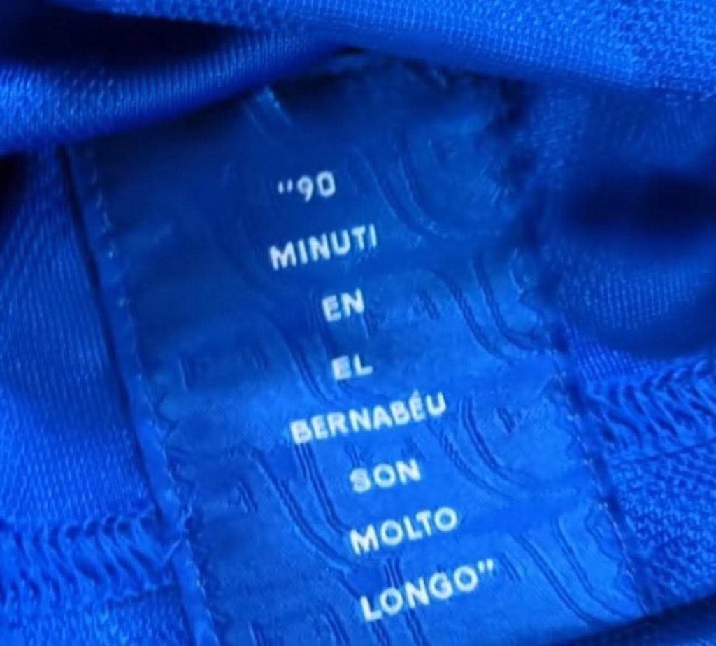عبارة “90 دقيقة في البيرنابيو طويلة جداً” تظهر مطبوعة على قميص ريال مدريد الثالث لموسم 2025/2026