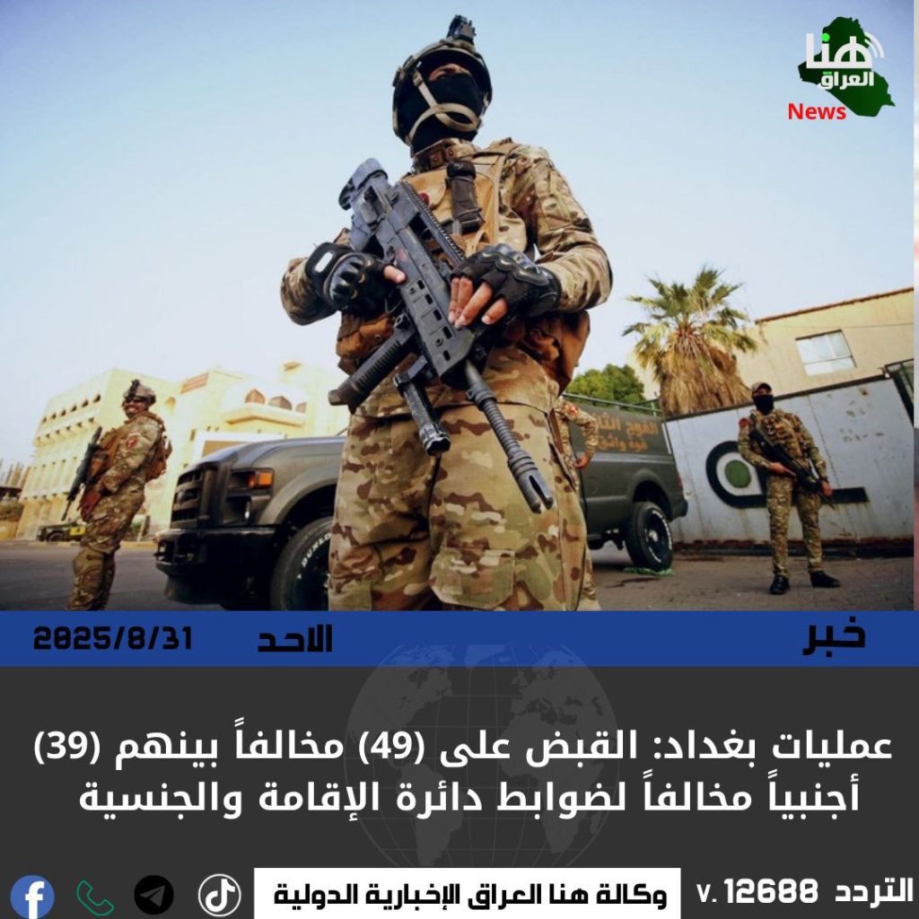 الرئيسية/امن/عمليات بغداد: القبض على (49) مخالفاً بينهم (39) أجنبياً مخالفاً لضوابط دائرة الإقامة والجنسية امنمحلي عمليات بغداد: القبض على (49) مخالفاً بينهم (39) أجنبياً مخالفاً لضوابط دائرة الإقامة والجنسية شاركها فيسبوك X لينكدإن Tumblr بينتيريست Reddit VKontakte Odnoklassniki Pocket مشاركة عبر البريد طباعة