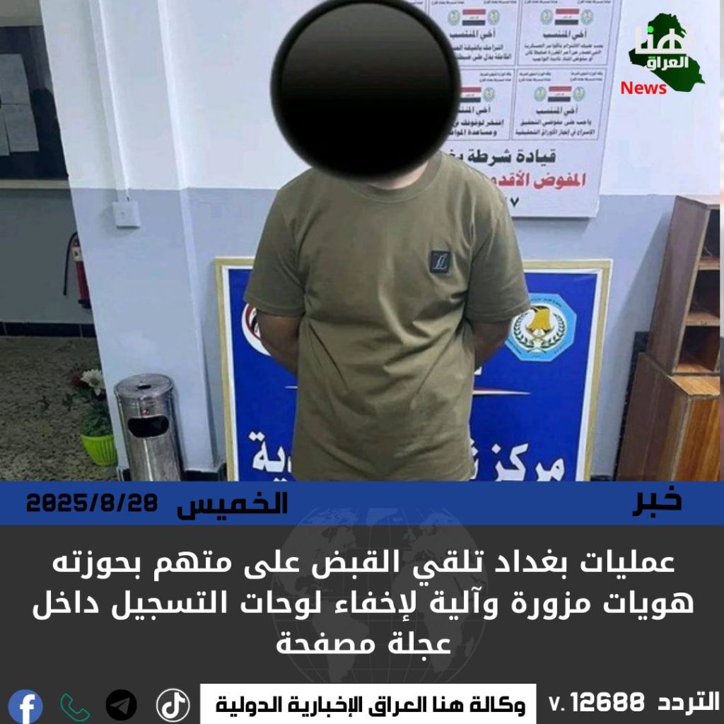عمليات بغداد تلقي القبض على متهم بحوزته هويات مزورة وآلية لإخفاء لوحات التسجيل داخل عجلة مصفحة