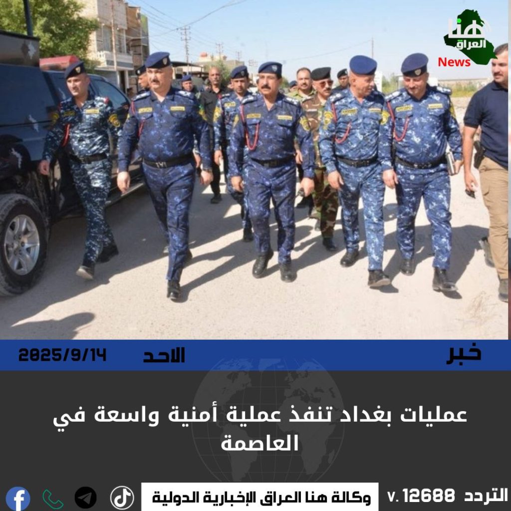 أعلنت قيادة عمليات بغداد انطلاق عملية أمنية واسعة في سبع مناطق مختلفة من العاصمة لتعزيز الأمن وملاحقة الخارجين عن القانون، مؤكدة مشاركة قطاعات الشرطة والجيش مع تكثيف نقاط التفتيش والمراقبة.