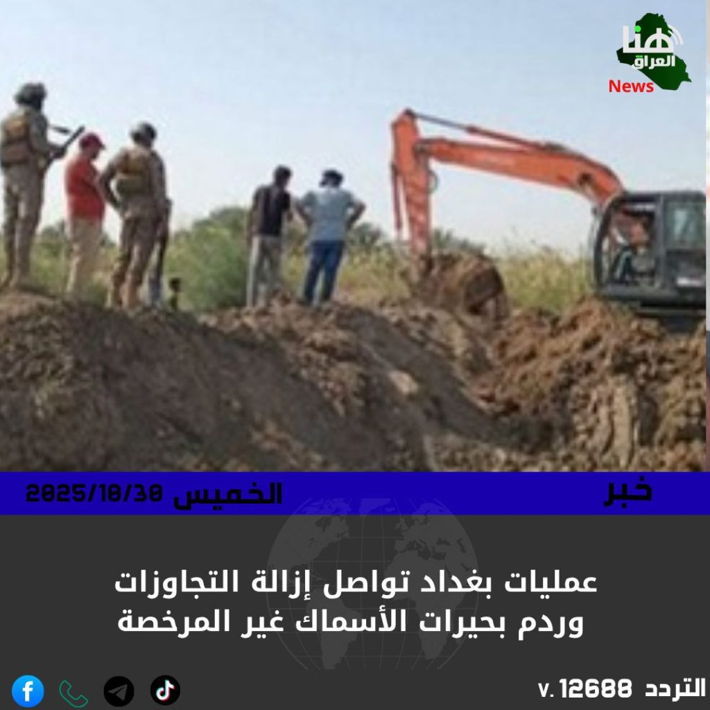 تواصل قيادة عمليات بغداد حملاتها الواسعة لمكافحة التجاوزات على الموارد المائية، إذ قامت بردم عدد من بحيرات الأسماك غير المصرح بها، ورفع التجاوزات على الأنهار الإروائية في مناطق محيط العاصمة.
