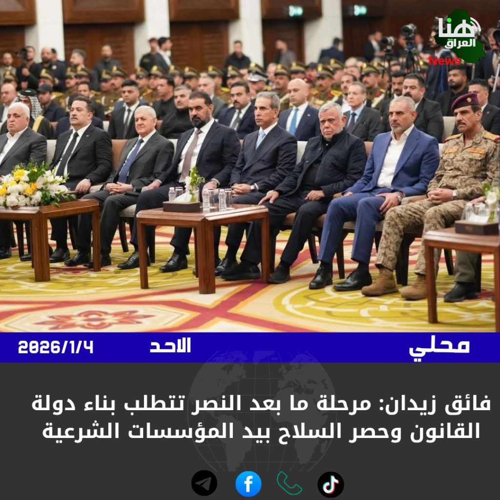 فائق زيدان: مرحلة ما بعد النصر تتطلب بناء دولة القانون وحصر السلاح بيد المؤسسات الشرعية
