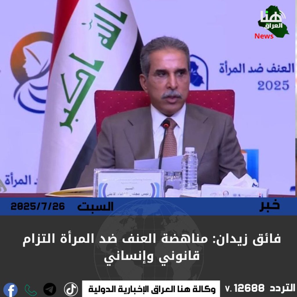 أكد رئيس مجلس القضاء الأعلى القاضي فائق زيدان أن مناهضة العنف ضد المرأة لا يجب أن تُختزل في شعارات، بل هي التزام شرعي وقانوني وإنساني يقع على عاتق الجميع.