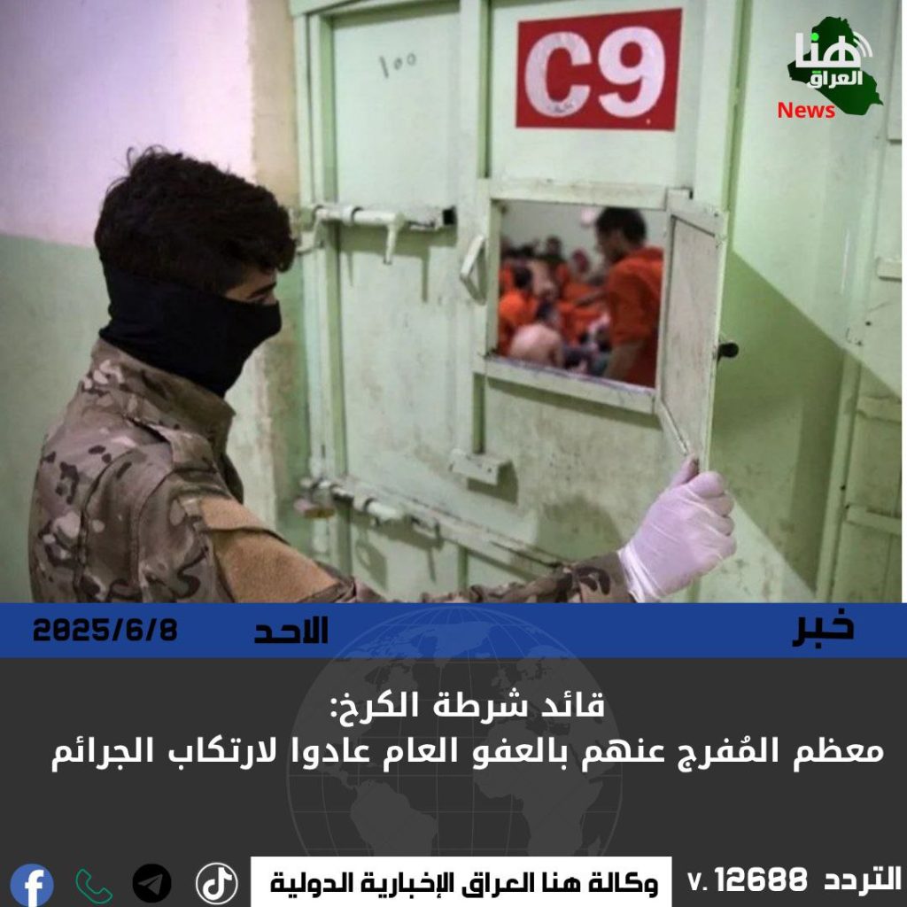 قائد شرطة الكرخ: معظم المُفرج عنهم بالعفو العام عادوا لارتكاب الجرائم