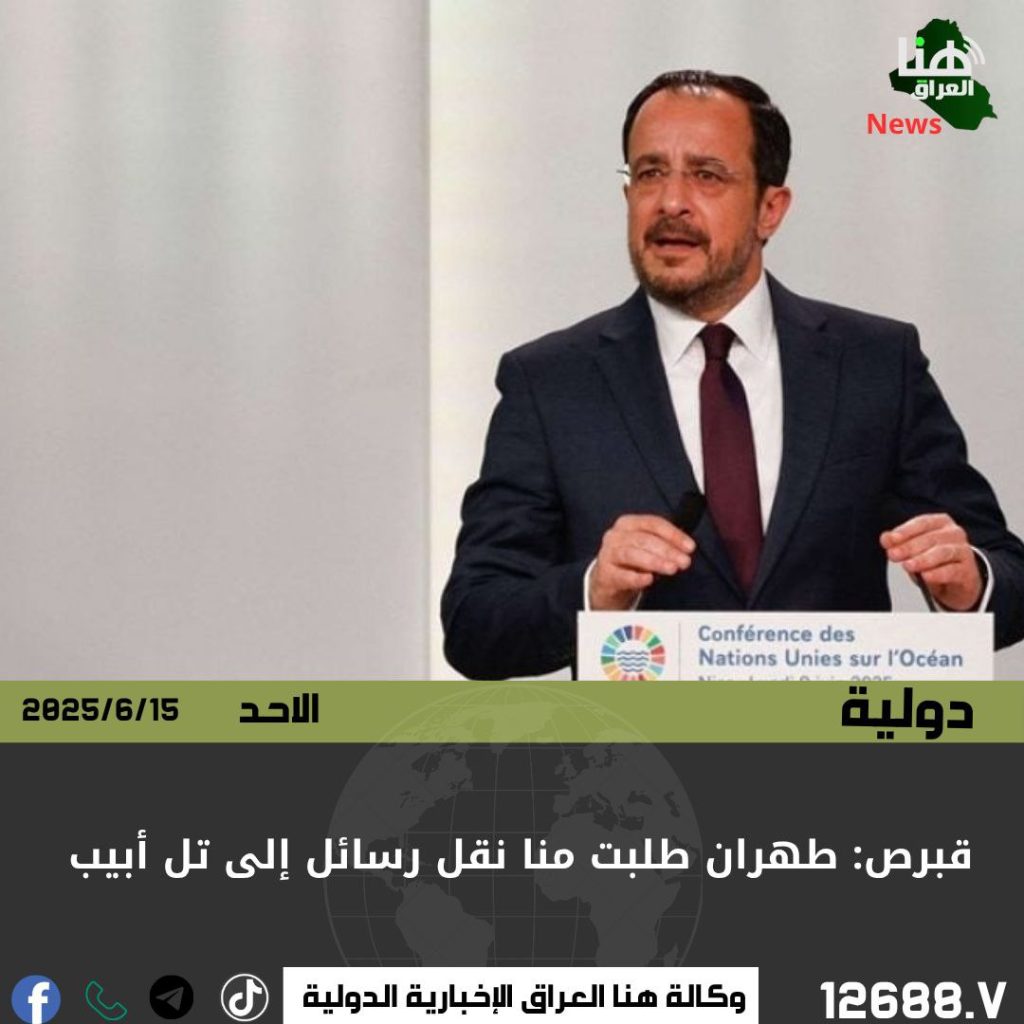 أعلن الرئيس القبرصي نيكوس كريستودوليديس، أن الجمهورية الإسلامية الإيرانية طلبت من بلاده نقل “بعض الرسائل” إلى الكيان الصهيوني، مؤكداً عزمه على الاتصال برئيس وزراء الاحتلال بنيامين نتنياهو لاحقاً.
