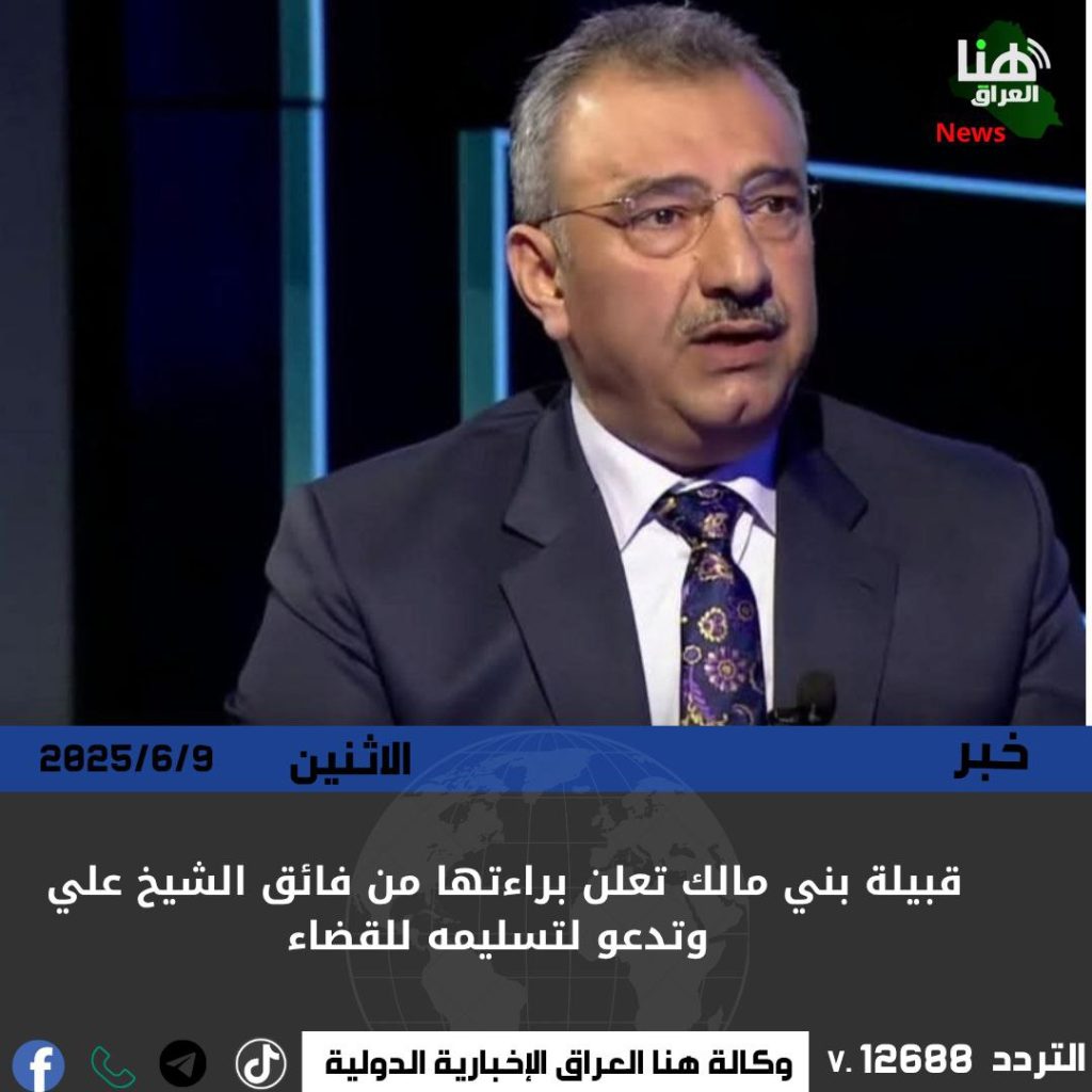 أعلنت قبيلة بني مالك براءتها من السياسي فائق الشيخ علي، على خلفية تصريحات مسيئة بحق النساء العراقيات، محمّلة إياه المسؤولية العشائرية والاجتماعية. ودعت القبيلة الحكومة إلى التحرك العاجل والتنسيق مع الإنتربول لتسليمه إلى القضاء العراقي.