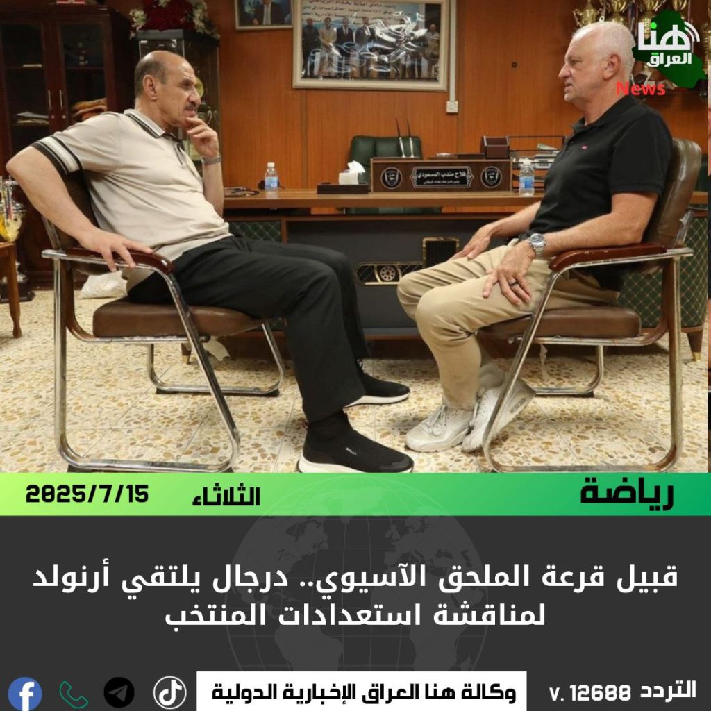 التقى رئيس الاتحاد العراقي لكرة القدم، عدنان درجال، مدرب المنتخب الوطني غراهام أرنولد، قبيل مغادرته إلى ماليزيا لحضور قرعة الملحق الآسيوي المؤهل إلى كأس العالم 2026.