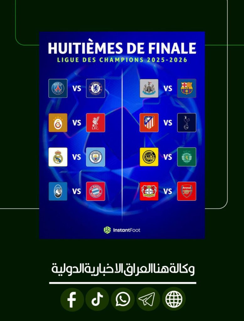 الرئيسية/رياضة/قرعة دور الـ16 لدوري أبطال أوروبا.. الريال بمواجهة السيتي مجددا وبرشلونة يلاعب نيوكاسل رياضة قرعة دور الـ16 لدوري أبطال أوروبا.. الريال بمواجهة السيتي مجددا وبرشلونة يلاعب نيوكاسل شاركها فيسبوك X لينكدإن Tumblr بينتيريست Reddit VKontakte Odnoklassniki Pocket مشاركة عبر البريد طباعة