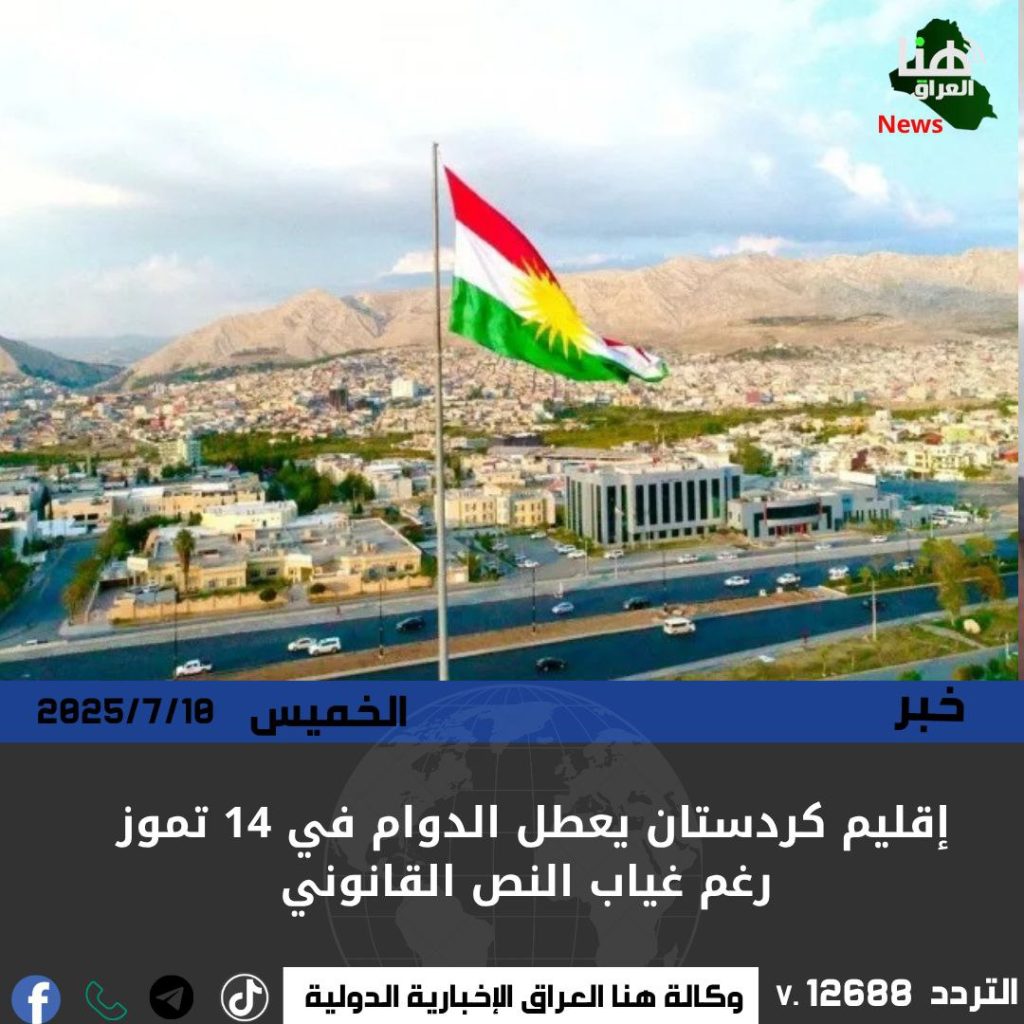 قليم كردستان يعطل الدوام في 14 تموز رغم غياب النص القانوني