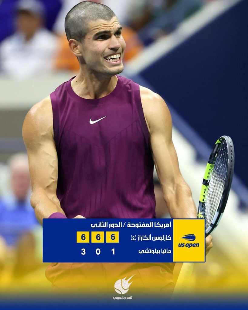 الرئيسية/رياضة/كارلوس الكاراز ينتصر على الإيطالي ماتيا بيلوتشي 3-0 منهيََا اللقاء أقل من ساعتين كارلوس يتأهل إلى الدور الثالث. رياضة كارلوس الكاراز ينتصر على الإيطالي ماتيا بيلوتشي 3-0 منهيََا اللقاء أقل من ساعتين كارلوس يتأهل إلى الدور الثالث. شاركها فيسبوك X لينكدإن Tumblr بينتيريست Reddit VKontakte Odnoklassniki Pocket مشاركة عبر البريد طباعة
