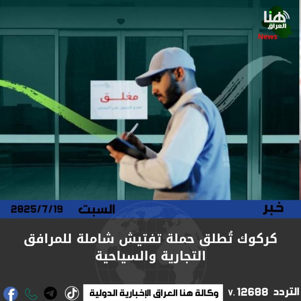 أطلقت محافظة كركوك حملة تفتيش موسعة على المرافق التجارية والسياحية، بهدف التأكد من تطبيق شروط السلامة العامة.