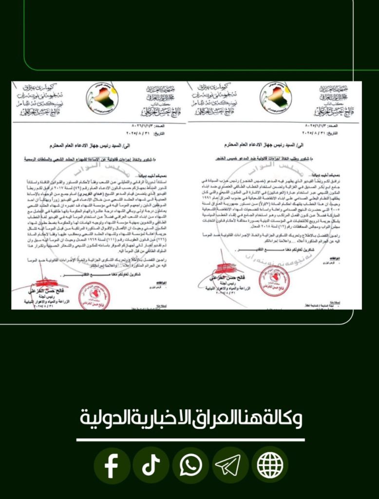 الرئيسية/امن/لتجاوزهما على الشهداء.. النائب فالح الخزعلي يرفع دعوى قضائية ضد خميس والمدعو “عداي الغريري” امنمحلي لتجاوزهما على الشهداء.. النائب فالح الخزعلي يرفع دعوى قضائية ضد خميس والمدعو “عداي الغريري” شاركها فيسبوك X لينكدإن Tumblr بينتيريست Reddit VKontakte Odnoklassniki Pocket مشاركة عبر البريد طباعة