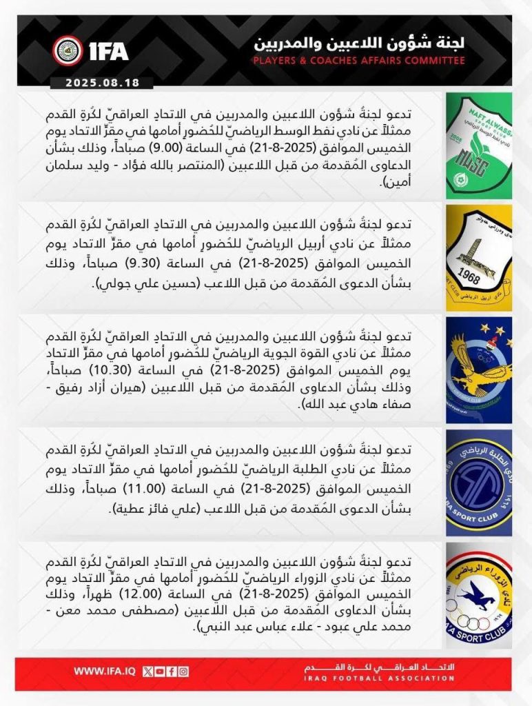 الرئيسية/رياضة/لجنة شؤون اللاعبين في اتحاد الكرة تدعو ممثلي اندية الزوراء والطلبة والجوية واربيل ونفط الوسط للحضور امامها للنظر بالدعاوى المقدمة ضدهم رياضة لجنة شؤون اللاعبين في اتحاد الكرة تدعو ممثلي اندية الزوراء والطلبة والجوية واربيل ونفط الوسط للحضور امامها للنظر بالدعاوى المقدمة ضدهم شاركها فيسبوك X لينكدإن Tumblr بينتيريست Reddit VKontakte Odnoklassniki Pocket مشاركة عبر البريد طباعة