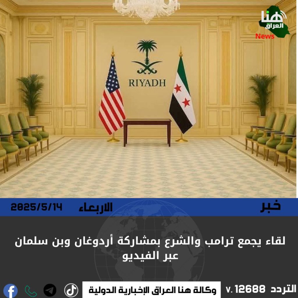 أفادت مصادر مطلعة ببدء لقاء يجمع الرئيس الأميركي دونالد ترامب مع الرئيس السوري أحمد الشرع، وسط مشاركة افتراضية للرئيس التركي رجب طيب أردوغان وولي العهد السعودي الأمير محمد بن سلمان.