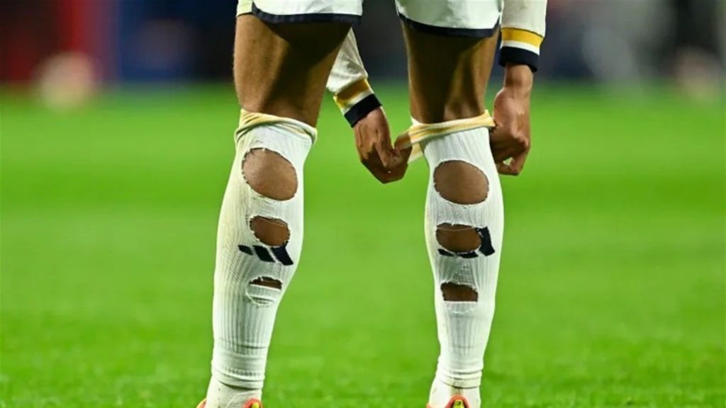 بل إن بيلينغهام بالغ في تمزيق الجوارب سواء مع فريقه ريال مدري الإسباني أو منتخب بلاده، بما في ذلك خلال كأس العالم 2022 في قطر، وسار على نهجه زميله بالمنتخب بوكايو ساكا.