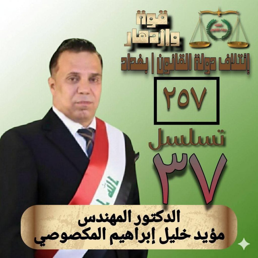 المرشح مؤيد خليل إبراهيم المكصوصي عن ائتلاف دولة القانون (تسلسل 37 ضمن القائمة 257) يمثل نموذجًا وطنيًا يجمع بين الخبرة والالتزام والإيمان العميق بمسار الدولة القوية التي تُسودها العدالة وسيادة القانون. عرف المكصوصي بثبات مواقفه وحرصه الدائم على الدفاع عن حقوق المواطنين، وسعيه الجاد لتكريس قيم الإصلاح والبناء الحقيقي.