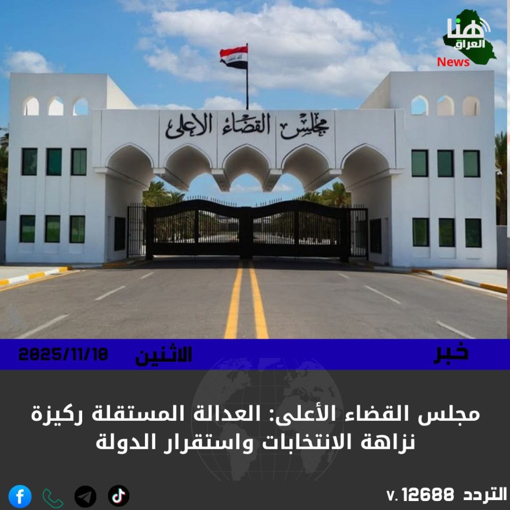 أكد مجلس القضاء الأعلى، اليوم الاثنين، أن العدالة المستقلة تمثل الركيزة الأساسية لنزاهة الانتخابات واستقرار الدولة الحديثة.