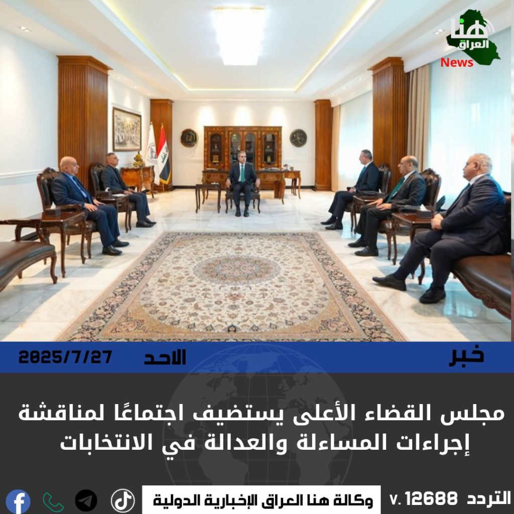 استضاف مجلس القضاء الأعلى، اليوم، اجتماعًا موسّعًا خُصّص لبحث إجراءات هيئة المساءلة والعدالة المتعلقة بالانتخابات المقبلة، وذلك بحضور ممثلين عن الجهات القضائية والتنفيذية ذات العلاقة.