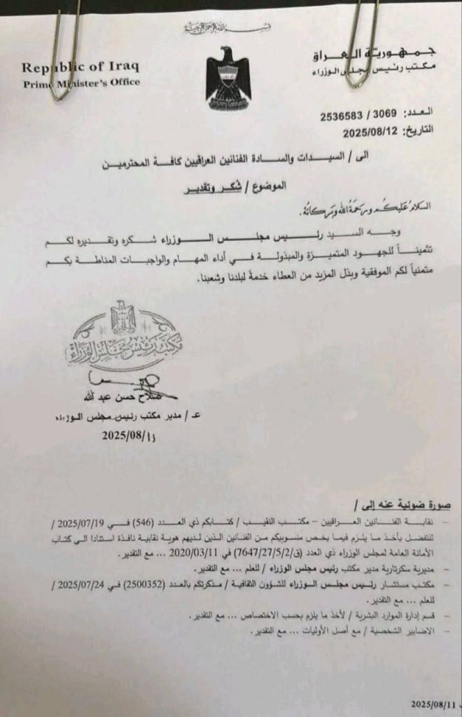 الرئيسية/ثقافة و فنون/مجلس الوزراء يقدم كتاب شكر وتقدير للفنانين العراقيين ثقافة و فنونمحلي مجلس الوزراء يقدم كتاب شكر وتقدير للفنانين العراقيين شاركها فيسبوك X لينكدإن Tumblr بينتيريست Reddit VKontakte Odnoklassniki Pocket مشاركة عبر البريد طباعة