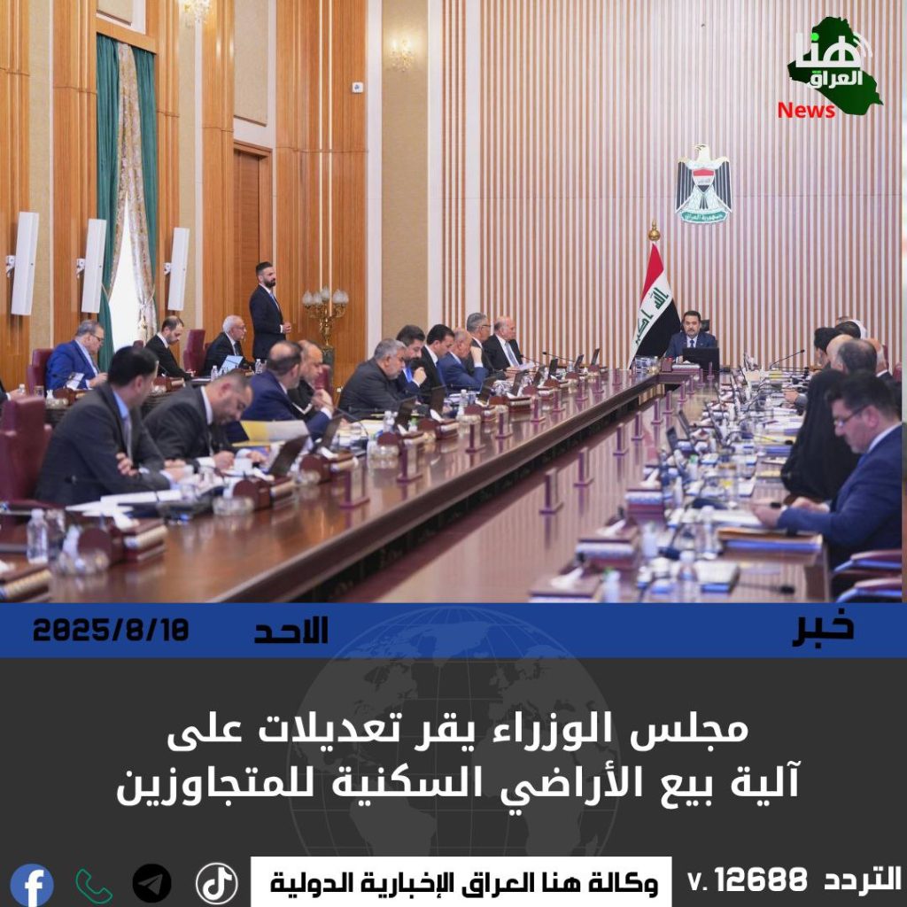 صوّت مجلس الوزراء على تعديل قراره رقم (20 لسنة 2025) الخاص ببيع الأراضي السكنية المملوكة للبلديات إلى المتجاوزين الذين شيدوا دوراً سكنية قبل 10 كانون الأول 2024.