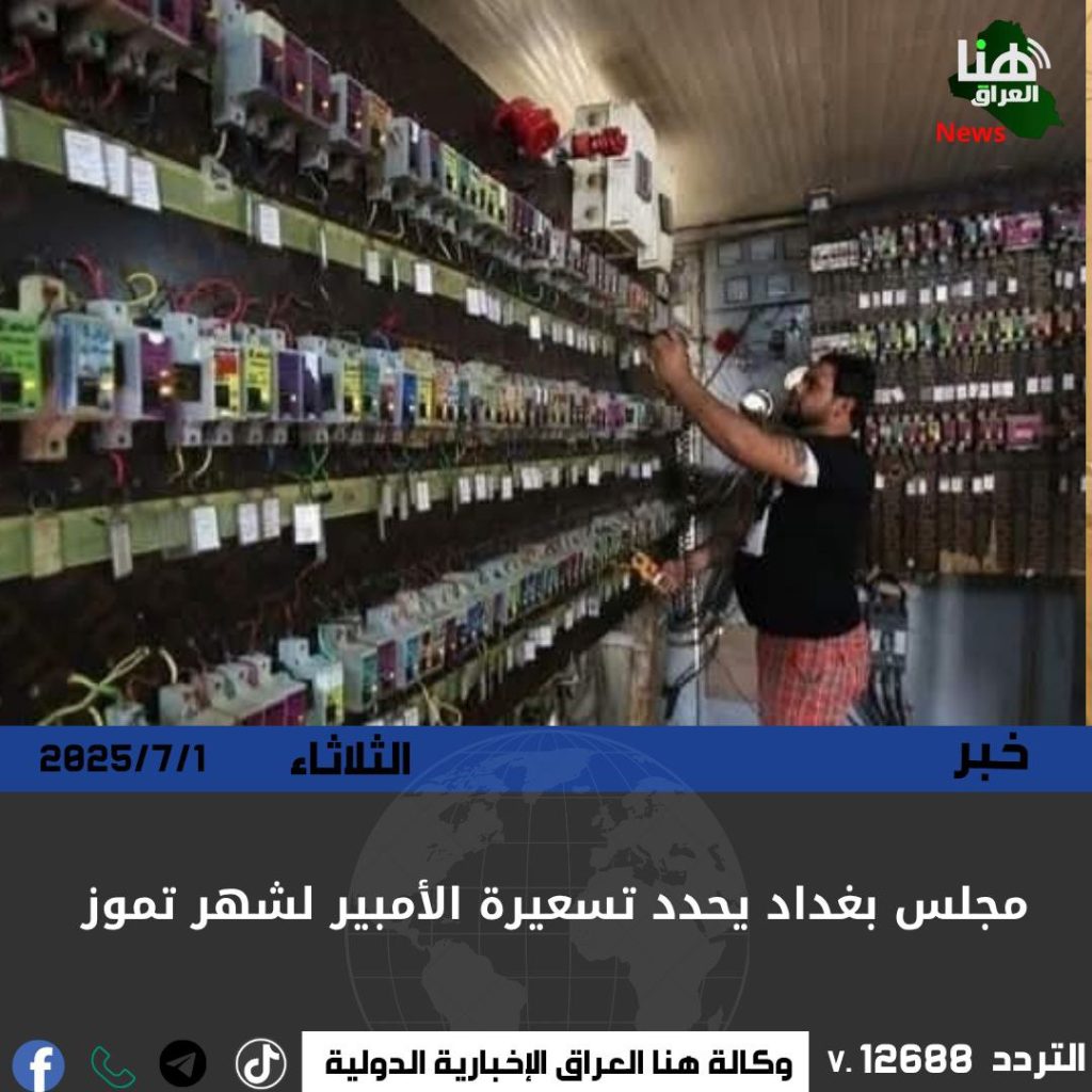 أعلن مجلس محافظة بغداد تحديد تسعيرة الأمبير للمولدات الأهلية لشهر تموز الجاري، إذ تم تثبيت السعر عند 10 آلاف دينار للمولدات التي تستلم حصة وقودية، و13 ألف دينار للمولدات غير المشمولة بحصة الگاز. القرار جاء بهدف تنظيم التسعيرة وضمان العدالة بين المواطنين.