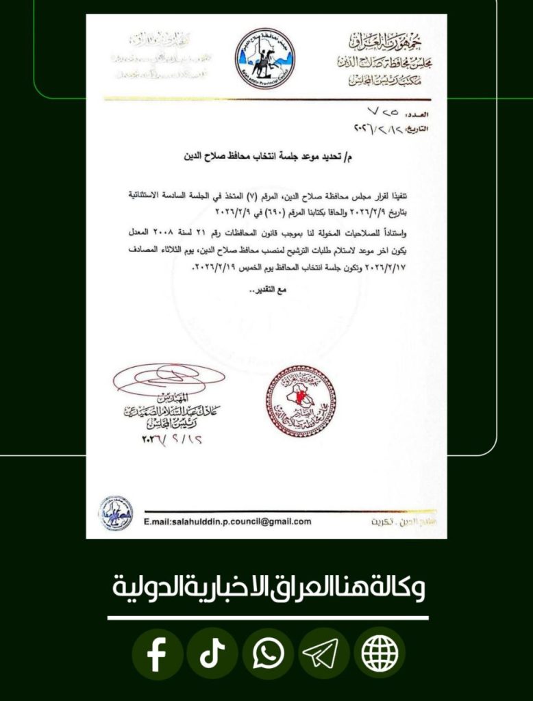 الرئيسية/محلي/مجلس محافظة صلاح الدين يحدد يوم الخميس المقبل موعداً لعقد جلسة انتخاب المحافظ محلي مجلس محافظة صلاح الدين يحدد يوم الخميس المقبل موعداً لعقد جلسة انتخاب المحافظ شاركها فيسبوك X لينكدإن Tumblr بينتيريست Reddit VKontakte Odnoklassniki Pocket مشاركة عبر البريد طباعة