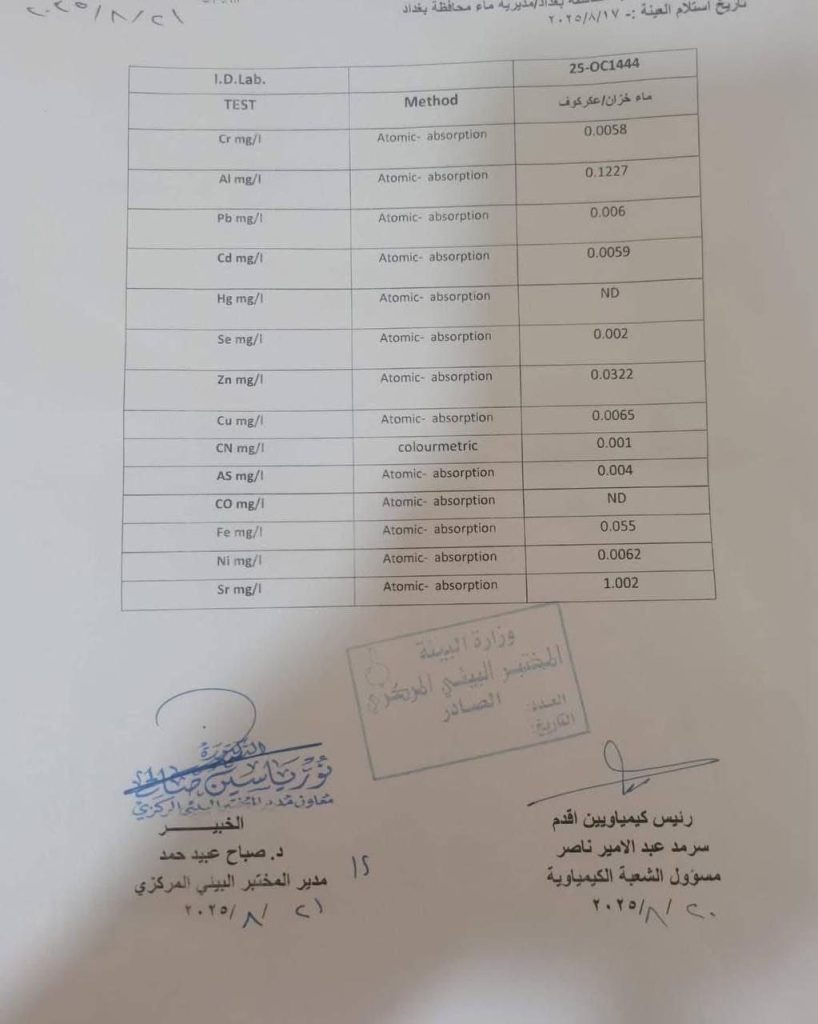 الرئيسية/صحة/محافظة بغداد: فحوص وزارة البيئة تؤكد سلامة مياه الخزان الأرضي في عكركوف من اي مواد سامة او ملوثات. صحةمحلي محافظة بغداد: فحوص وزارة البيئة تؤكد سلامة مياه الخزان الأرضي في عكركوف من اي مواد سامة او ملوثات. شاركها فيسبوك X لينكدإن Tumblr بينتيريست Reddit VKontakte Odnoklassniki Pocket مشاركة عبر البريد طباعة