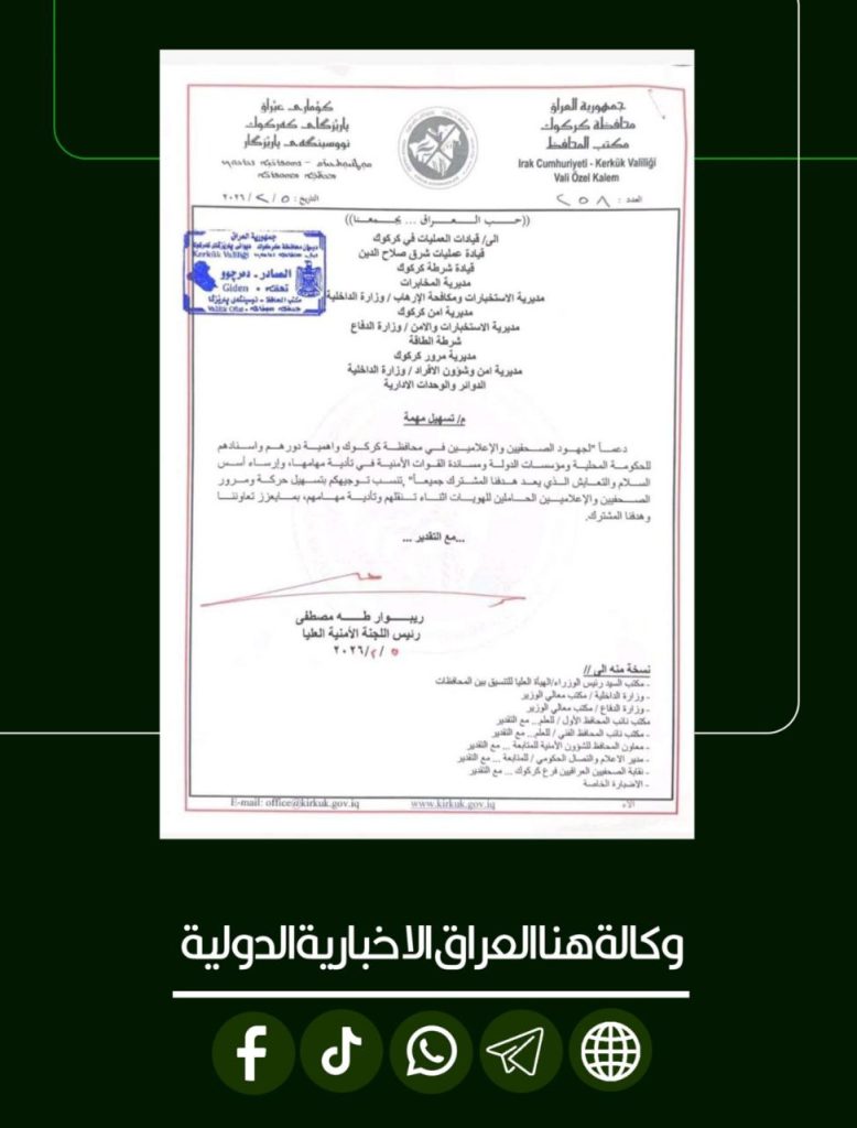 الرئيسية/امن/محافظة كركوك تدعو قيادة العمليات الأمنية لتسهيل عمل الصحفيين امنمحلي محافظة كركوك تدعو قيادة العمليات الأمنية لتسهيل عمل الصحفيين شاركها فيسبوك X لينكدإن Tumblr بينتيريست Reddit VKontakte Odnoklassniki Pocket مشاركة عبر البريد طباعة