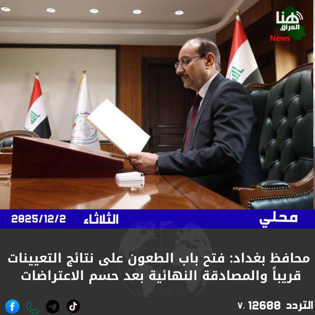 الرئيسية/محلي/محافظ بغداد: فتح باب الطعون على نتائج التعيينات قريباً والمصادقة النهائية بعد حسم الاعتراضات محلي محافظ بغداد: فتح باب الطعون على نتائج التعيينات قريباً والمصادقة النهائية بعد حسم الاعتراضات شاركها فيسبوك X لينكدإن Tumblr بينتيريست Reddit VKontakte Odnoklassniki Pocket مشاركة عبر البريد طباعة