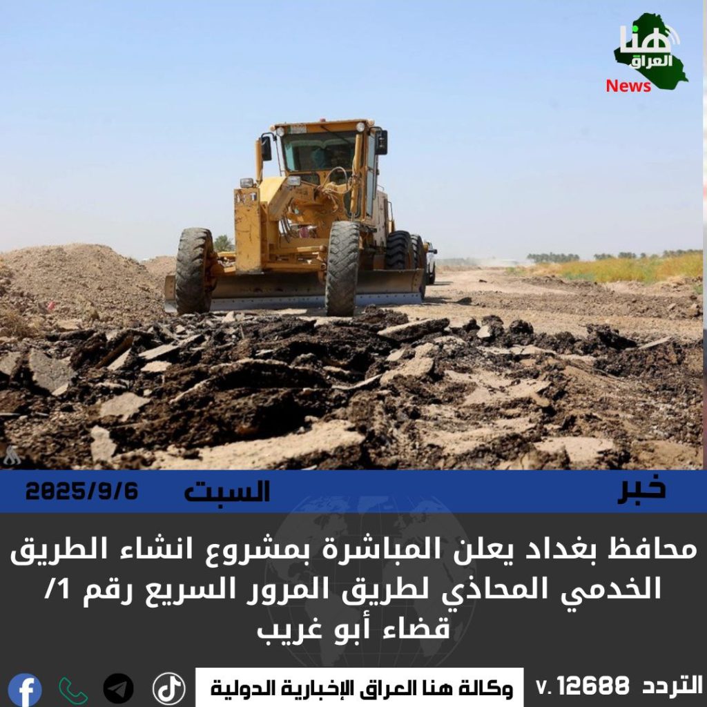 الرئيسية/محلي/محافظ بغداد يعلن المباشرة بمشروع انشاء الطريق الخدمي المحاذي لطريق المرور السريع رقم 1/ قضاء أبو غريب محلي محافظ بغداد يعلن المباشرة بمشروع انشاء الطريق الخدمي المحاذي لطريق المرور السريع رقم 1/ قضاء أبو غريب شاركها فيسبوك X لينكدإن Tumblr بينتيريست Reddit VKontakte Odnoklassniki Pocket مشاركة عبر البريد طباعة