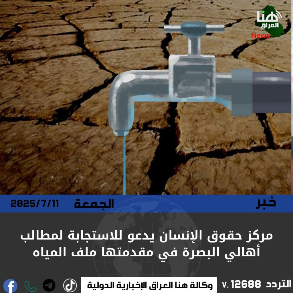 دعا مركز العراق لحقوق الإنسان الحكومة إلى تلبية المطالب المشروعة لسكان محافظة البصرة، وفي مقدمتها معالجة أزمة المياه المتفاقمة.